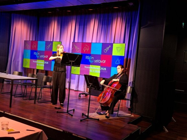 Ensimmäiseksi esiintyi kaksi Sibelius-Akatemian opiskelijaa: Skyla Murray, viulu, ja Ágústa Jakobsdottír, sello. He soittivat Joseph Haydnin kauniin duon viululle ja sellolle D-duuri Hob.VI:D1.